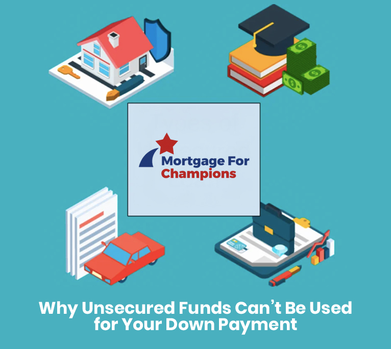 Conventional and FHA mortgage guidelines strictly prohibit the use of unsecured funds for your down payment, reserves, or closing costs.